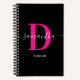 Black, white and bright hot pink modern signature style monogrammed to do list notebook for her at work.