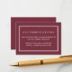 Slip these chic, petite cards into your wedding invitations to let out of town guests know of any hotel arrangements or group codes. Rich plum purple cards feature elegant white block lettering. Coordinates with our Cherry Blossoms wedding invitation suite.