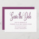 Elegant and deep purple plum and white design. Save the Date is written in beautiful script text. Your names, wedding date, and location follow. You can include an additional message on the back.