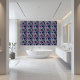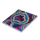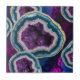 This striking tile pattern features a repeating design of sliced amethyst geodes, showcasing their natural beauty and intricate crystal formations. The deep purple hues of the amethyst, contrasted with the bands of white and teal, and a touch of gold, create a luxurious and eye-catching design.