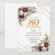 Deep Red Burgundy Flowers Eucalyptus 80th Birthday Invitation