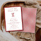 The back of the invitation has a bold deep red checkered pattern, adding a touch of vintage European charm and Old Money elegance.
