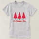 Tee in a simplified modern take on a classic Christmas tree motif, deep red quilted satin damask on a salmon pink background, with customizable text