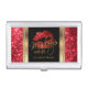 Deep Red Glitter Lips on Gold & Black Business Card Case