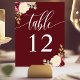 Deep Red Merlot Floral Calligraphy Wedding Table Number