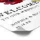 Welcome sign for wedding features watercolor single deep red burgundy rose flower. Classic typography used.