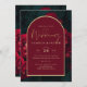 Deep Red Roses Forest Green Winter Wedding Invitation