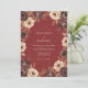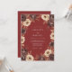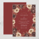 This design features a rich deep red backdrop adorned with a dense arrangement of dark chocolate and cream-colored roses. The moody aesthetic captures the essence of a late-season harvest with its dark tones and organic floral placement. Golden-brown leaves add a touch of woodland charm to the sophisticated palette.