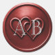 Deep Red Two Hearts Silver Monogram Wedding Classic Round Sticker