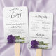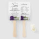 These beautiful wedding program fans are elegant, romantic, classy and tasteful. The design features a single long-stemmed royal purple colored rose lying on its side, reflecting in a pool of water with waves and ripples. The typography features lacy black script calligraphy, and there is room for details on the ceremony, the bridal party, and a short thank you.