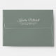 A deep sage green envelope with a text template on the back flap to personalize with your return address.