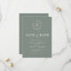 A tasteful and classic choice in wedding Save the Date cards, this design conveys a simple elegance in its text layout and classic style. A simple open laurel wreath of sketched leaves surrounds the monogram initial of the bride and groom. The elegant yet simple text template has a sample text template to personalize with your desired information.