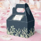 A stylish wedding favor box featuring delicate watercolor leaves on a deep sea blue background framing your names and thank you message. A perfect way to say thank you to your guests! Designed by Thisisnotme©