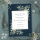 Featuring botanical watercolor greenery leaves, this stylish Save the Date card can be personalized with your special Save the date details, with a deep sea blue background on the reverse. Designed by Thisisnotme©