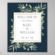 Featuring delicate watercolor greenery leaves on a deep sea blue background. This chic welcome sign can be personalized with your special wedding day information. Designed by Thisisnotme©