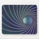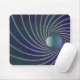 Silver spirals spin through the ocean depths and converge behind a smooth blue, purple, and green gem.