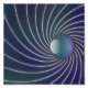 Silver spirals spin through the ocean depths and converge behind a smooth blue, purple, and green gem.