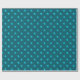 A festive wrapping paper featuring a dark teal blue background with shimmering blue stars in a repeat pattern.