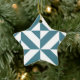 Deep Teal Green Geometric Deco Cube Pattern Ceramic Ornament