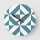 Deep Teal Green Geometric Deco Cube Pattern Round Clock