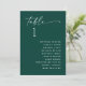Guide your guests in style with this elegant wedding table seating chart, featuring a rich deep teal green background and minimalist typography. The bold jewel tone, also described as dark forest teal, brings depth and sophistication to your wedding decor. Perfect for modern, boho, woodland, or evening weddings. This teal seating card adds a dramatic touch that pairs beautifully with gold, ivory, or blush accents. Available as both a printed card and a digital download, making it easy to print at home, through a local print shop, or order professionally printed.