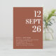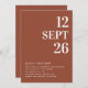 This elegant wedding invitation template features a warm deep terracotta (also known as rust clay) background, complemented by clean white typography. The rich, earthy tone creates a cozy, autumn inspired vibe. The template is fully customizable, allowing you to add your own details, including the wedding date, couple’s names, venue information, and more. On the back, a photo frame allows you to add a personal touch with your own image. A QR code is also included for guests to easily access RSVP and event details. This wedding invitation template is ideal for couples planning a fall wedding, combining modern design with the warmth of the season. Available as both a printed card and a digital download.