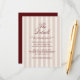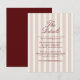 Deep Wine old money wedding details cards designed for a refined, estate-inspired celebration. This Deep Wine and Dried Rose details card features a heritage stripe backing paired with classic Old World calligraphy for a timeless editorial look. Inspired by 2026 Winecore and European manor aesthetics, it’s perfect for the traditional yet style-aware bride. Include hotel blocks, travel information, or wedding website details. Personalize to coordinate effortlessly with your suite.