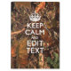 Your personalized Keep Calm saying on a deep fall season camouflage decor. A personalized Keep Calm style saying on a one of a kind gift. Humorous or whimsical try on your creative words on two editable lines of text. Remember to use CAPITAL letters for best results.