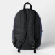 This vibrant backpack features abstract fluid art: deep purple and navy blue marbled swirl with pearlescent white cells, cosmic acrylic pour texture perfect for modern art prints. The front zippered pocket features a blueish purple sail boat art print.