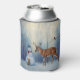 Deer and Happy Snowman Winter Holiday Scene Can Cooler