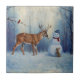 Deer and Happy Snowman Winter Holiday Scene Ceramic Tile