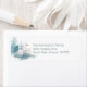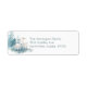 Christmas themed return address labels, with beautiful watercolor graphics of a white deer and pine trees, done in soft pastel colors. Personalize the dusty blue colored text with your information.