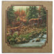 Whitetail doe and buck walking through the forest along a cascading stream of rocks and waterfalls. Realistic artwork created from an original oil painting by wildlife and equine artist Crista S. Forest.