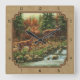 Deer and Stream Waterfall Tan Square Wall Clock