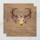 Rustic southwestern watercolor wedding invitation with feather and jewel draped deer skull on a rustic wood background. This beautiful and rustic ornate deer antler deer skull wedding invitation is easily customized for your event by simply adding your details in the font style and color and wording of your choice.
