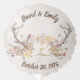 Floral bouquet with deer antlers on soft textured background for wedding anniversary.