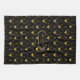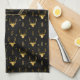 This kitchen towel features a trendy pattern of deer head silhouettes with curving antlers, stylized arrows and tiny snowflakes with a textured-effect in shades of gold on a black background Optional 'Happy Holidays' text and a label have been provided to add your name and/or other text. Search ID861 thru ID864 to see additional color options and other products in this modern, Christmas design set.