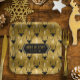 This paper plate features a trendy pattern of deer head silhouettes with curving antlers, stylized arrows and tiny snowflakes in black and white on a textured-effect background in shades of gold. Optional 'Happy Holidays' text and a label have been provided to add your name and/or other text. Search ID861 thru ID864 to see additional color options and other products in this modern, Christmas design set.