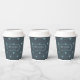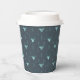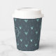 This paper cup features a trendy pattern of deer head silhouettes with curving antlers, stylized arrows and tiny snowflakes with a textured-effect in shades of watchet blue on a deep teal background. Optional 'Happy Holidays' text and a label have been provided to add your name and/or other text. Search ID861 thru ID864 to see additional color options and other products in this modern, Christmas design set.