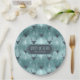 This paper plate features a trendy pattern of deer head silhouettes with curving antlers, stylized arrows and tiny snowflakes in deep teal on a textured-effect background in shades of watchet blue. Optional 'Happy Holidays' text and a label have been provided to add your name and/or other text. Search ID861 thru ID864 to see additional color options and other products in this modern, Christmas design set.
