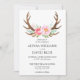 Deer Antlers Boho Floral Watercolor Pink Wedding Invitation