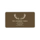 A brown return address sticker with a deer antlers illustration and customizable name or company and address for your letters, packages and more. Perfect for family or small business!