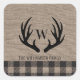 Deer Antlers Rustic Burlap Family Name Square Sticker
