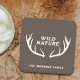 Coasters with a brown deer antlers illustration and a fully customizable text: “Wild Nature” in rustic style on a brown background! Add a touch of wildlife nature to your cocktails with friends or family!