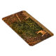 This fine art flexible magnet features an early morning sunrise with two brown white-tailed deer (odocolleus virginianus) who have been sleeping at the foot of a green evergreen tree. Their eyes, neck and tail are white. The forest is tinged with orange light.