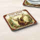 This rustic country coaster set is perfect for adding a personalized touch to your cabin, lodge or home that features nature / animal decor. It shows a vintage image of a buck deer / reindeer with large antlers, recolored to add brightness and clarity, nestled between pine tree boughs. The background is made to look like a slightly-torn paper attached to a wood grain. Add your name to the top to customize. The word "cabin" can also be changed. See the matching set in our store under "Bar Sets / Matching Home Sets." These are perfect for an old west / rustic Americana look or for fans of hunting.