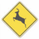 A yellow deer crossing sign.