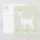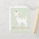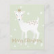 NewParkLane - Cute Christmas Postcard, with a cute deer and a snowy background in soft sage green. With quote: 'Merry Christmas' in gold script typography.