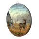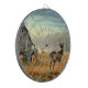 A beautiful farm scene on a metal cage dart board.