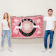 Beautiful Christmas holiday throw blanket features a background of pink with white snowflakes, a ring of solid black with a few white snowflakes, and a center of pink with tiny white polka dots. Two white deer silhouettes adorn this pretty holiday throw and there's an area you can easily personalize with your family name.